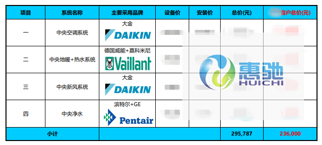 別墅舒適節(jié)能系統(tǒng)匯總表